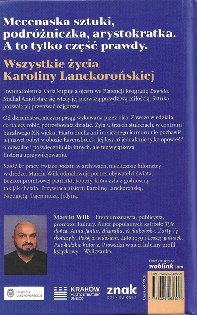 Dla stypendystów Fundacji Lanckorońskich i historyków sztuki, bywalców gabinetu Istituto Storico Polacco przy via Orsini 19 w Rzymie, którzy poznali wielobarwną, niepowtarzalną i jak najdalszą od stereotypów Karolinę Lanckorońską, biografia Marcina Wilka będzie portretem niedokończonym. Zawsze bowiem znajdą się jakieś inne, nieopisane okruchy wspomnień, wrażeń i przemyśleń, każdy odbierał spotkanie z nią inaczej, nigdy obojętnie, nigdy powierzchownie. Może książka Marcina Wilka wywoła à rebours potrzebę napisania wspomnień z rozmów i spotkań z profesor Lanckorońską, które zostawiły niezatarty ślad w ich pamięci.