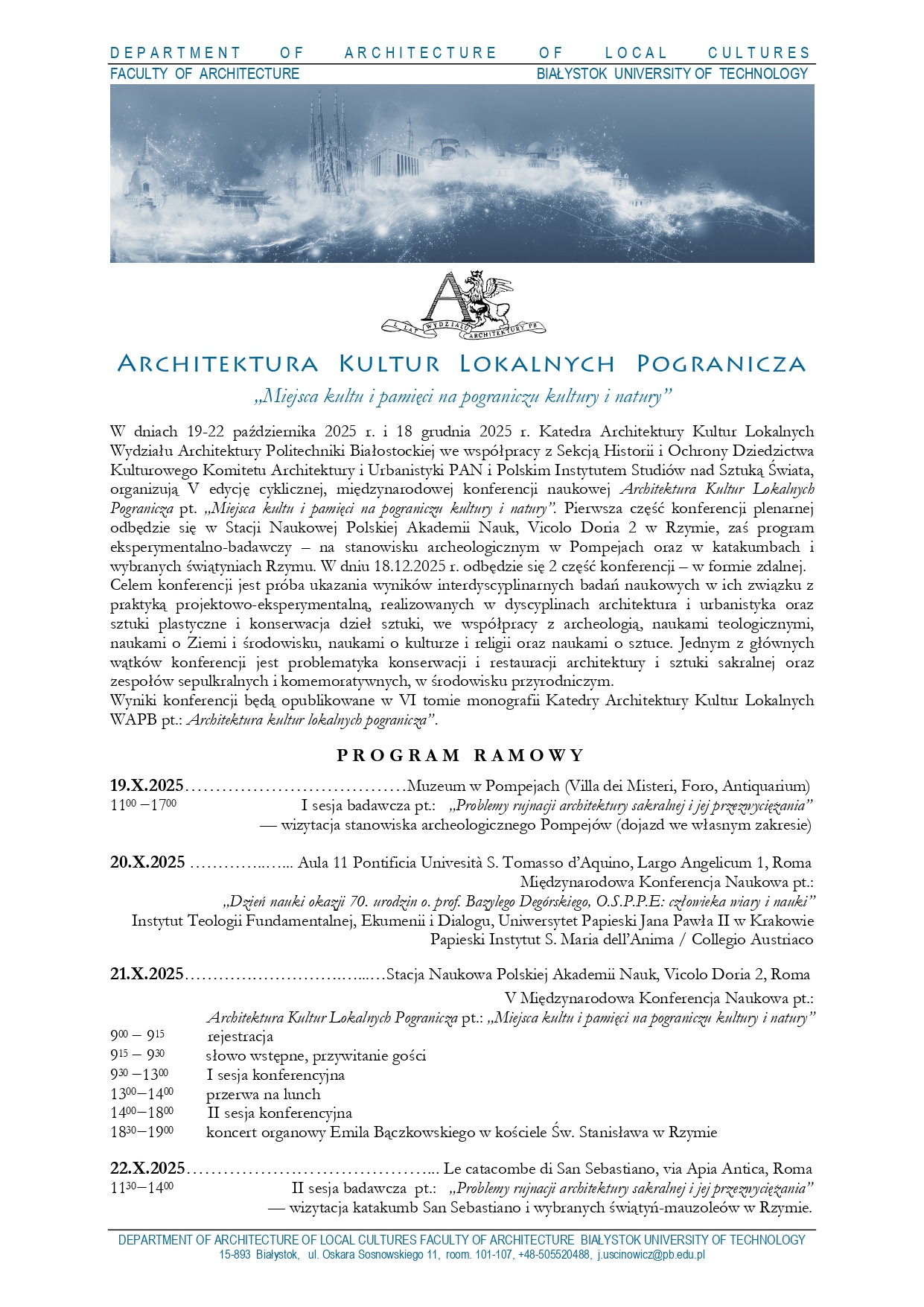 w obiektach złożonych materiałowo, wielkoformatowych lub w stanie destrukcyjnym z uwzględnieniem wyzwań kulturowych i środowiskowych. Szczególna uwaga zostanie poświęcona innowacjom technologicznym