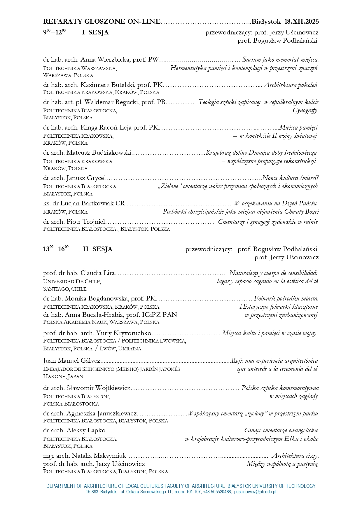 Powiadomienie autorów o przyjęciu lub odrzuceniu propozycji wystąpień oraz posterów: 30.01.2026