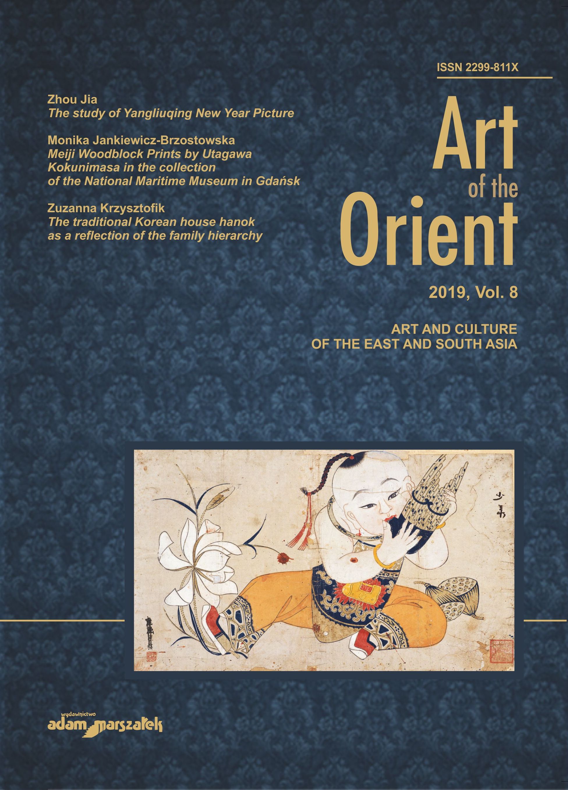 Contents: Bogna Łakomska, Introduction; Zhou Jia, The study of Yangliuqing New Year Picture; Monika Jankiewicz-Brzostowska, Meiji Woodblock Prints by Utagawa Kokunimasa in the collection of the National Maritime Museum in Gdańsk: Katarzyna Kulpińska, Japanese pacifist and ecological posters U.G. Satō and others: Amelia Macioszek, Negotiating Appropriation – Later Safavid Adaptations of Chinese Blue-and-white Porcelain; Bogna Łakomska, The significance of Gegu yaolun 格古要論 – a 14th century antiquarian guide for the development of China’s knowledge and material culture; Zuzanna Krzysztofik, The traditional Korean house hanok as a reflection of the family hierarchy; Marianna Lis, The Art of Wayang; Joanna Wacławek, Landscape in the light of regaining Independence Reflectionson the relationships between elements of commemorative architecture and Hindu-Buddhist motifs in the art of Central Java.