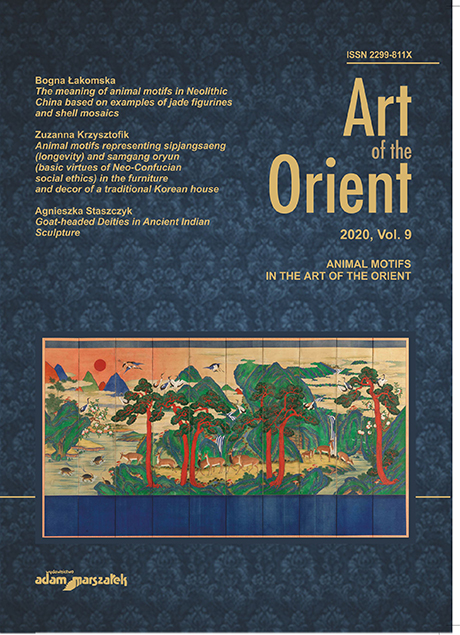 Contens: Introduction; Bogna Łakomska, The meaning of animal motifs in Neolithic China based on examples of jade figurines and shell mosaics; Agnieszka Staszczyk, Goat-headed deities in ancient Indian sculpture; Dorota Kamińska, Multiple roles of dogs in India – culture, art and the colonial context; Zuzanna Krzysztofik, Animal motifs representing sipjangsaeng (longevity) and samgang oryun (basic virtues of Neo-Confucian social ethics) in the furniture and decor of a traditional Korean house; Katarzyna Zapolska, Confucian values contained in representations of birds on Chinese fabrics during the Qing Dynasty; Monika Jankiewicz-Brzostowska, Depictions of Animals in the Satirical War Prints of Kobayashi Kiyochika; Magdalena Furmanik, Disgust or fascination? Insects in works of contemporary East Asian artists.